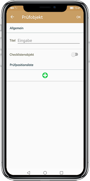 Now you can enter the title of the test object. With a click on the green plus you can create test positions.