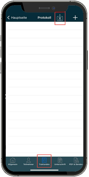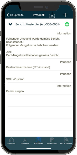 When you have created the protocol, you will find the Save button in the upper left corner under the item Send PDF &. You will then find the created protocol among the files on your device.