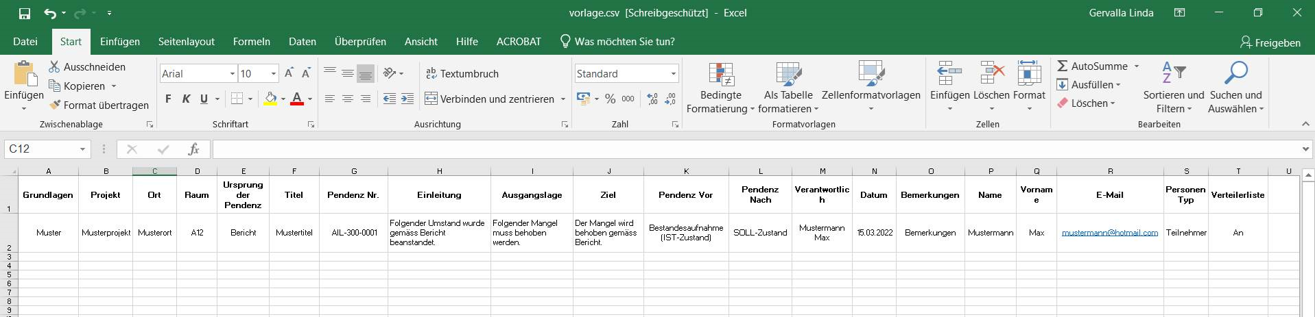 Note: The data must be filled as specified, so that the CSV can be implemented error-free in the DokPro application.