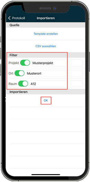 Now you can insert the project, location and room. After that press "OK".