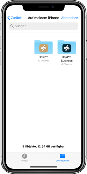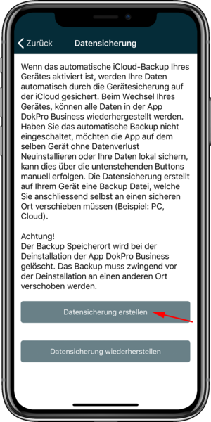 Under the item Settings you will find the category "Data Backup". With a "click" on the button you can save your data locally on the corresponding device. The data will be saved on your device under Files.